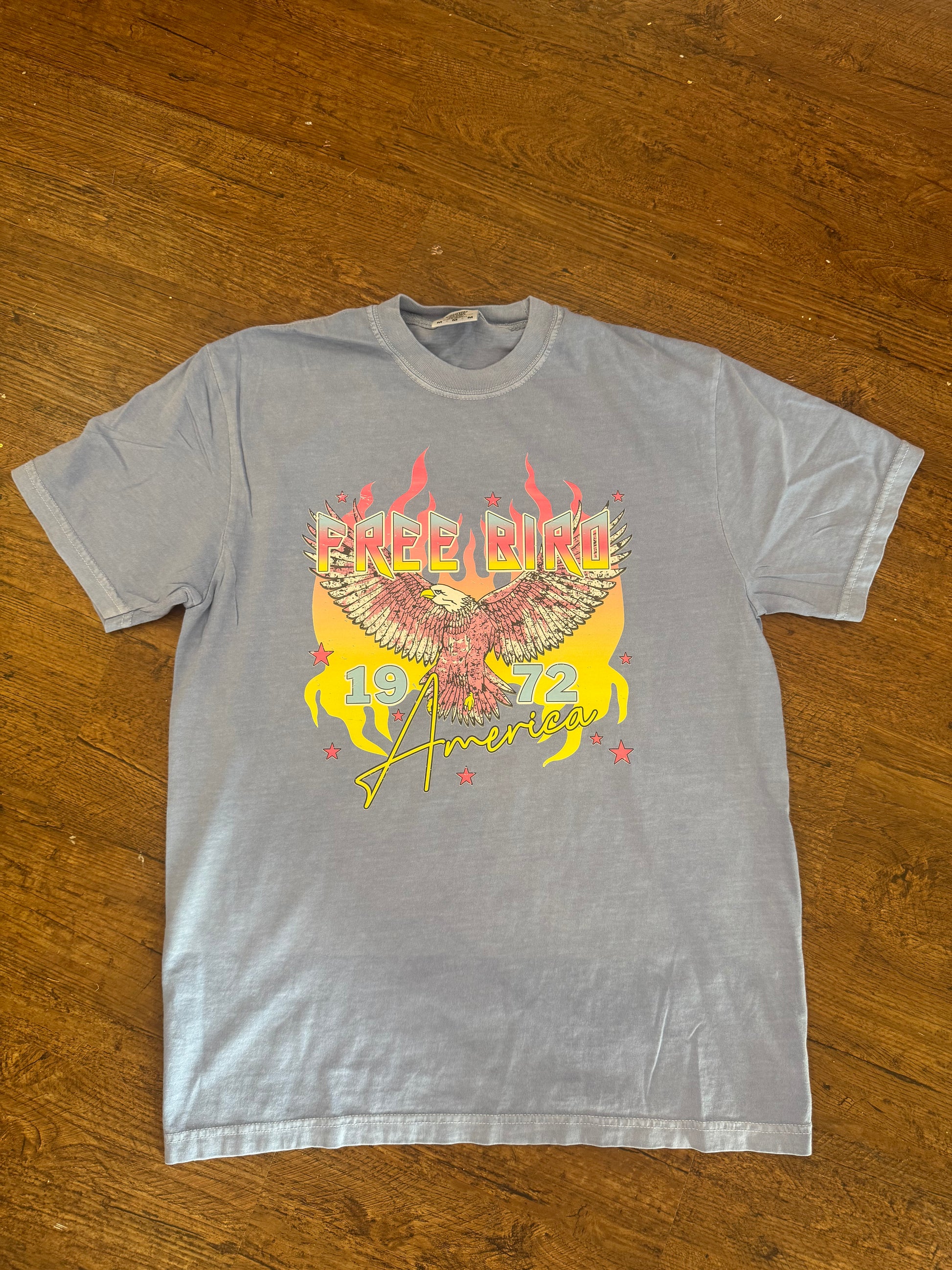 Denim blue comfort colors T-shirt with free bird print